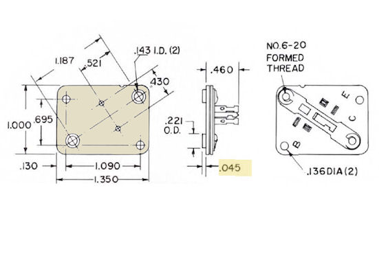 Keystone Electronics 4608 Chassis Mount TO-3 Transistor Socket with 0.045" tall molded insulating boss. Natural Nylon and Phenolic construction.