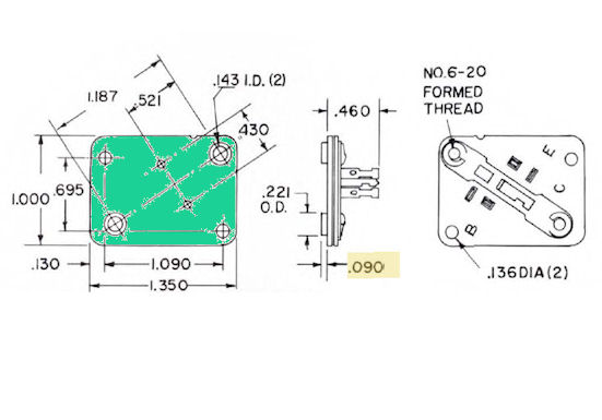 Keystone Electronics 4610 Chassis Mount TO-3 Transistor Socket with 0.090" tall molded insulating boss. Green Nylon and Phenolic construction.