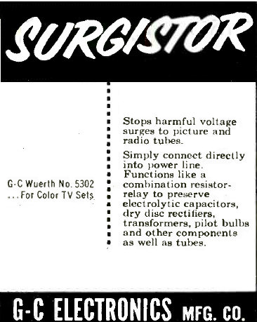 GC Electronics 5302 Surgistor/ Wuerth 1050-5 Surgistor as used in vintage tube chassis color TV to prevent or reduce harmful voltage surge at turn on.  Recommended for 450-650 Watt chassis.